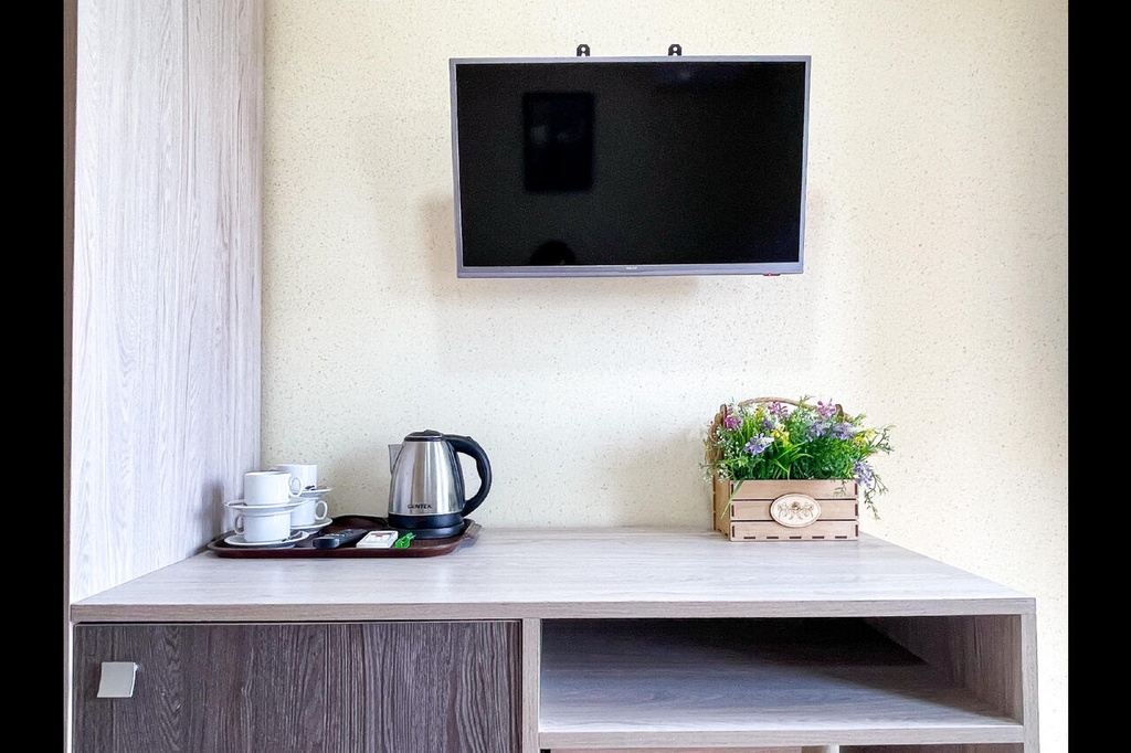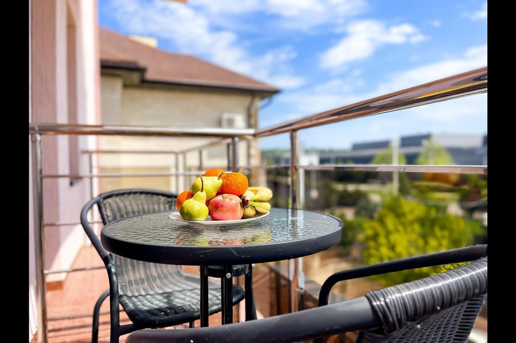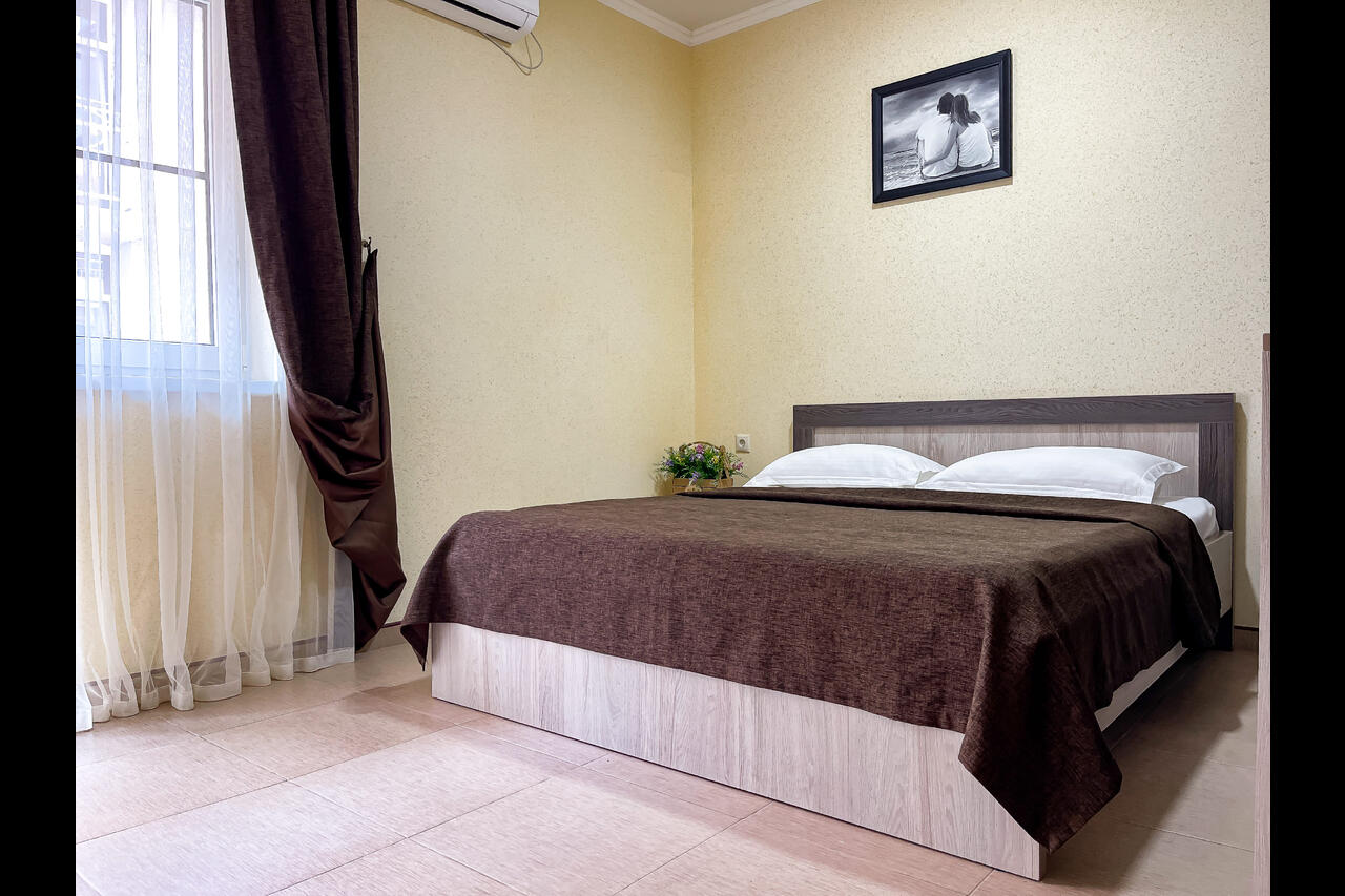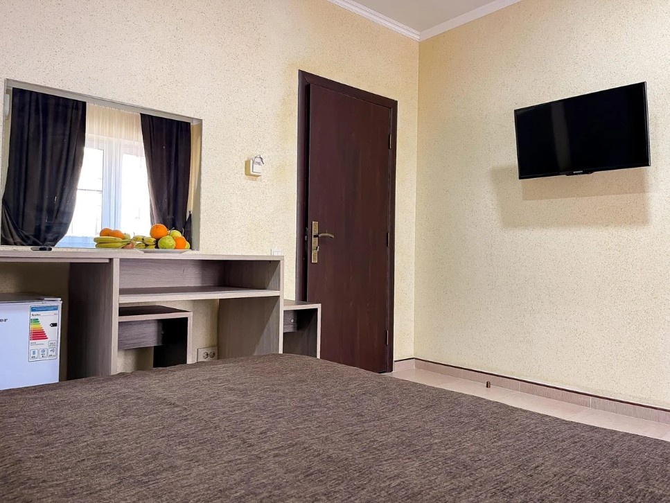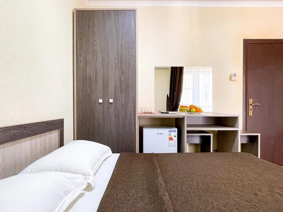 Новые современные номера с балконами. Стоимость номеров никак не зависит от количества человек. Дополнительные места еврораскладушки или детские кроватки, стульчики для кормления, ванночки и горшки предоставляются бесплатно.