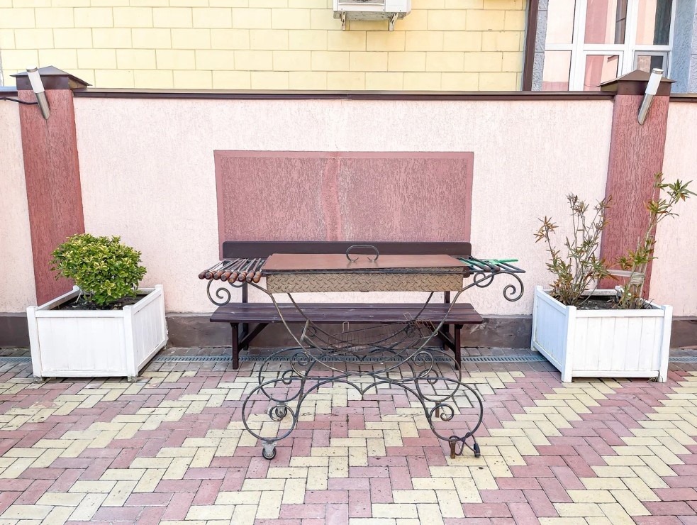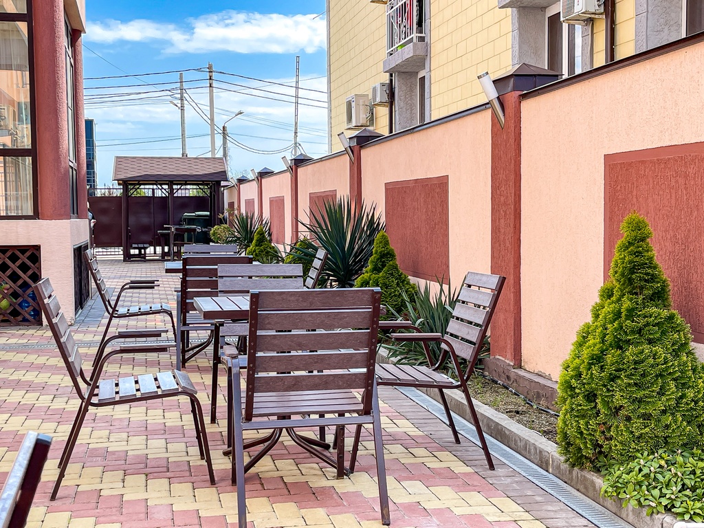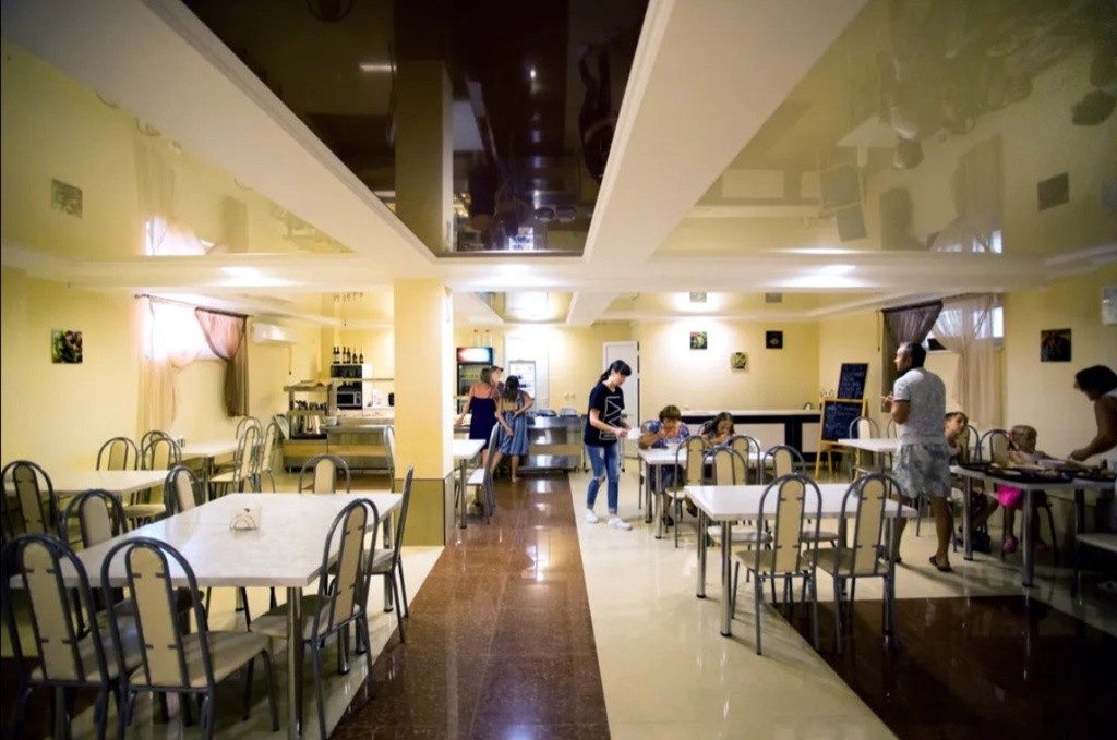 Столовая в отеле, демократичные цены, зона мангал-барбекю, беседки.