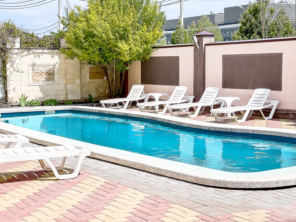 В стоимость проживания включено: проживание в номере, пользование бассейном, шезлонгами, беседками, мангалом, анимационные программы для детей, детская площадка, батут, парковка, встреча на ЖД вокзале Анапы (Тоннельная платно)