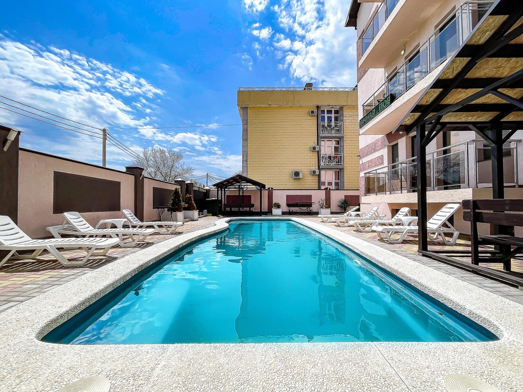 "Отличный отдых с семьей. Море находится недалеко. Совсем близко Пионерский проспект с развлечениями для детей и взрослых. В шаговой доступности аквапарк. И при этом ночью не беспокоит громкая музыка. Приятно удивил бассейн с теплой водой, достаточно больших размеров для взрослых и детей. Гостям предоставляются полотенца для бассейна - приятно))) Рекомендую для отдыха."