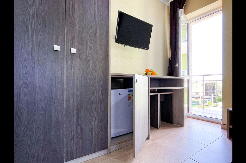 До моря 900 метров или 10 минут ходьбы. Множество магазинов, кафе, столовых, парк аттракционов и аквапарк находятся в шаговой доступности, в 5-10 минутах ходьбы.